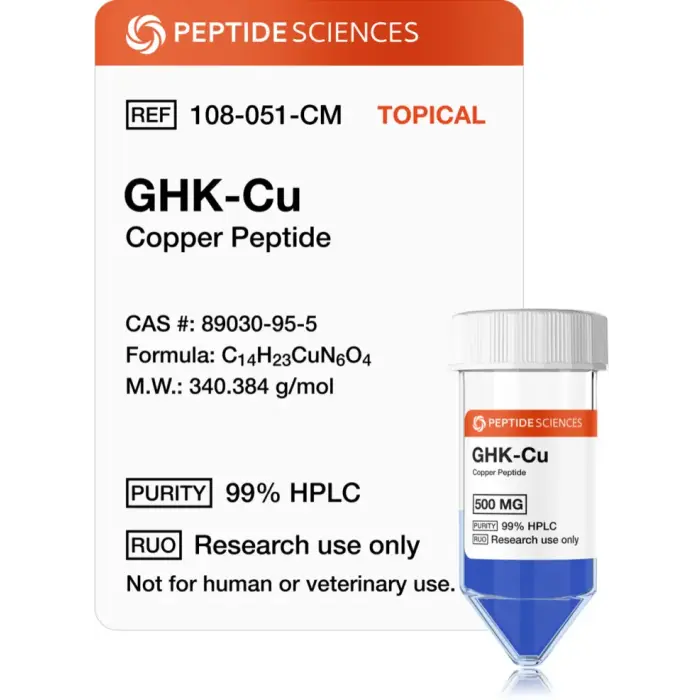 GHK-Cu 500 mg is supplied for research purposes only and is not FDA-approved for human use. It is not intended to diagnose, treat, cure, or prevent any condition. Consult a licensed professional before use. Peptide Sciences USA assumes no liability for misuse. All information is educational and based on preclinical and clinical research.