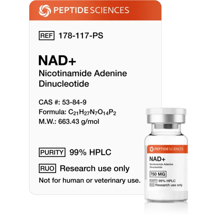 Peptide Sciences USA's NAD+ 750 mg is your key to cutting-edge anti-aging studies. Here's the breakdown: