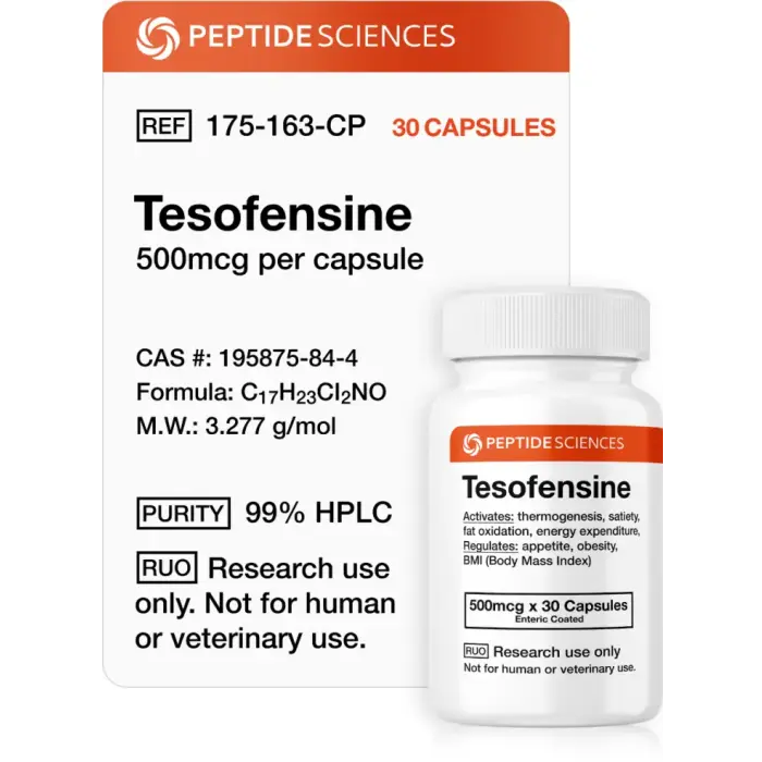 Envision a lab where appetite fades, metabolism surges, and vitality thrives. Tesofensine 500 mcg from Peptide Sciences USA ignites breakthroughs. This triple monoamine reuptake inhibitor suppresses appetite and boosts fat oxidation, driving transformative studies in weight loss, metabolic health, and cognitive function. It's your pulse for pioneering research, crafted for visionary researchers like you.